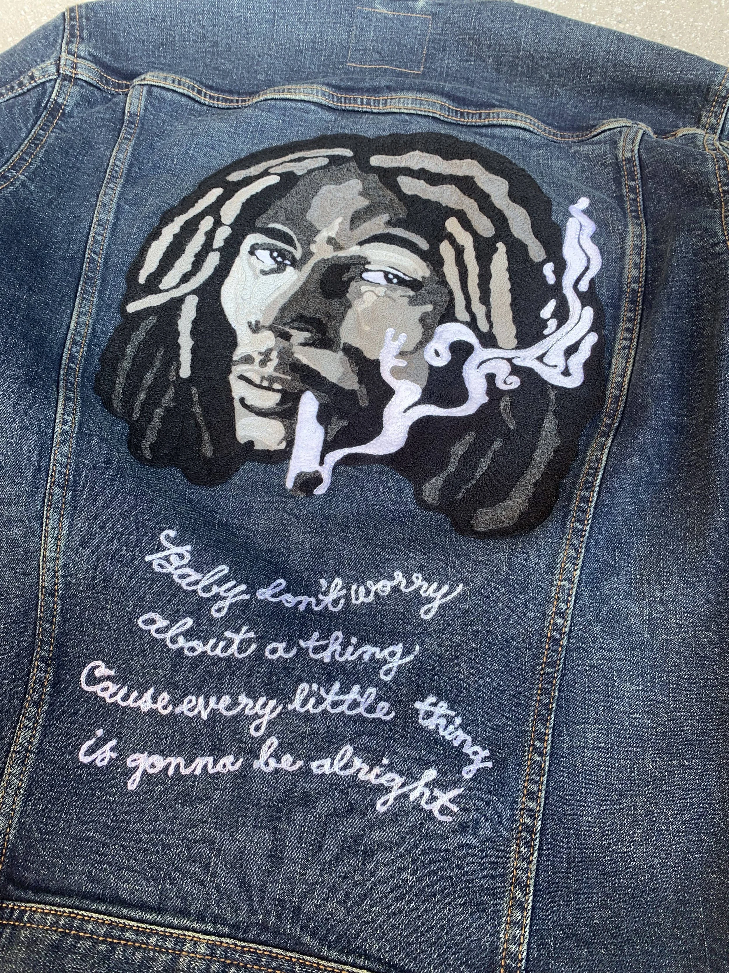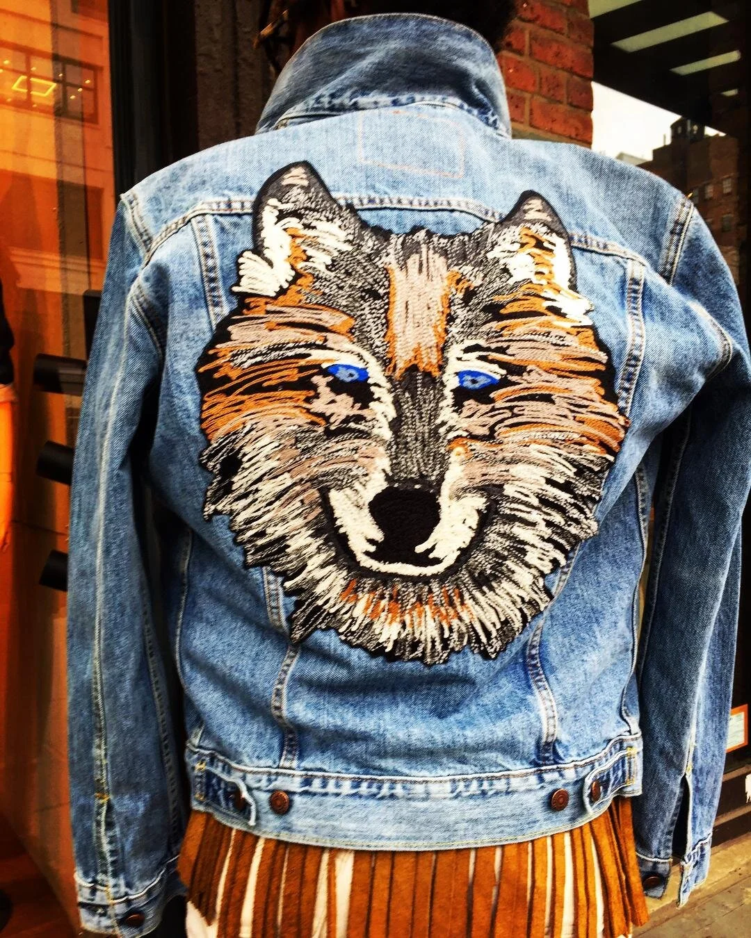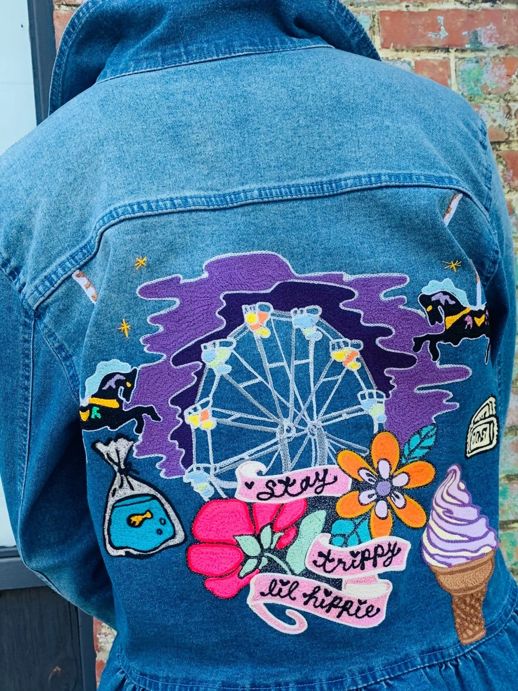 Looking for a full color, custom designed full back piece? You fancy, huh?! The possibilities are endless. Logos, wedding party gifts, birthday parties, you name it, we can create amazing works of embroidery art that you will love forever! “Full back” includes multiple units on one jacket (text and font). Using a vintage, hand-cranked chainstitch embroidery machine, the laborious art of chainstitch yields one of a kind designs and can be applied to a variety of woven fabrics. Prices vary by size, design intricacy, and thread color count.